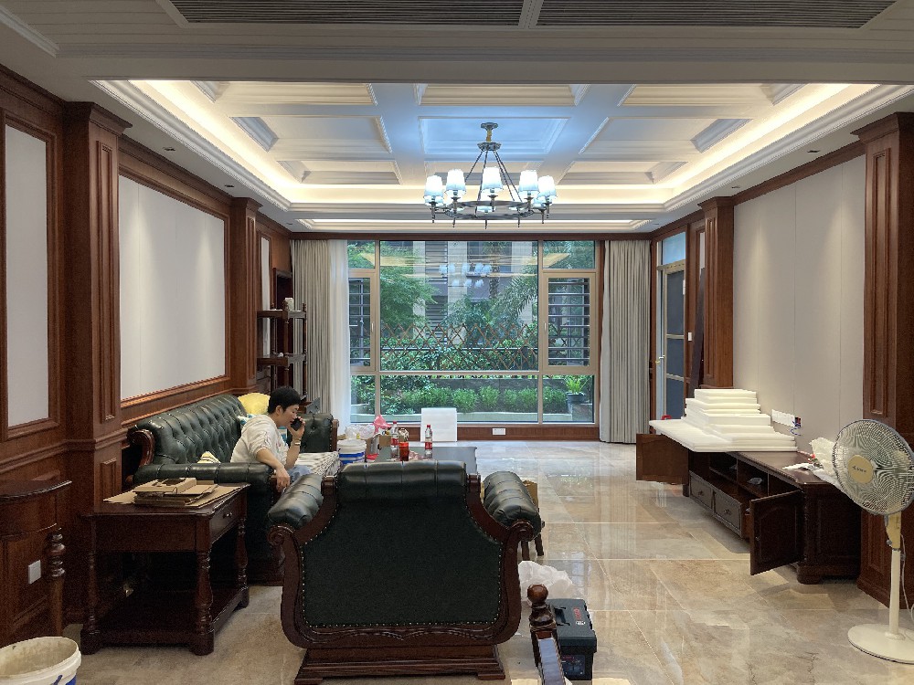 今天給大家分享一套美式風格樣板房案例。這套樣板房是廣西臨桂專賣店譚總去年打造的一套大平層樣板房。整套樣板房由專賣店全程參與打造,施工按照公司標準落地,部分頂面還試用公司頂面L型龍骨打底,整體下來硬裝效果非常不錯?,F階段軟裝還未全部完成,硬裝柜子部分還有部分門板需進行調整,因此現場拍攝的一些照片并不是···