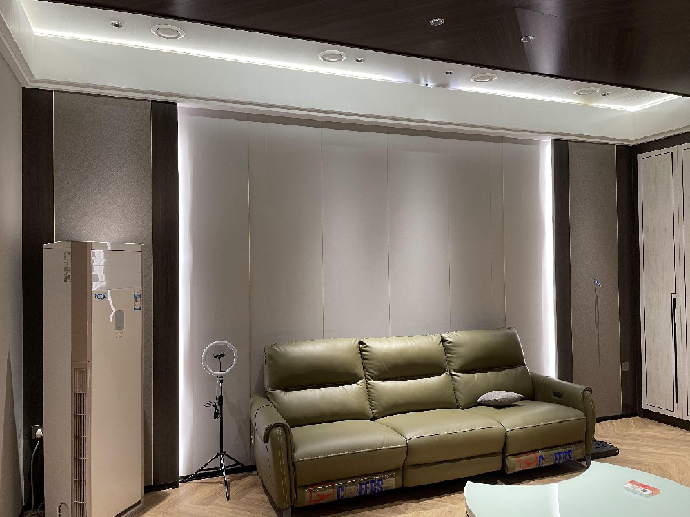 今天分享一套新中式全案,采用高迪米灰鎖扣板,煙熏木格柵板及雪白玉蕊鎖扣板,點綴絲織咖與絲織駝輕奢板搭配的新中式家裝案例。 全房金屬線方與圓,山水畫等元素貫穿其中,客廳采用雪白玉蕊頂面裝飾,加金屬線框點狀孔燈為主,配合簡約的家具造型,沉穩的色調,美的淡然。 墻面采用高迪米灰鎖扣板加煙熏木格柵板···