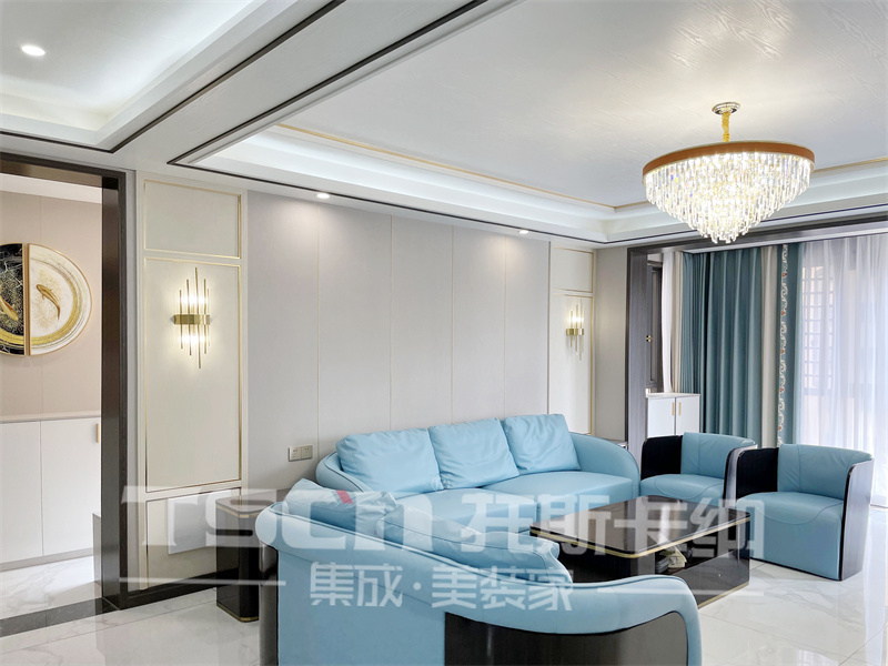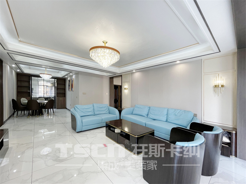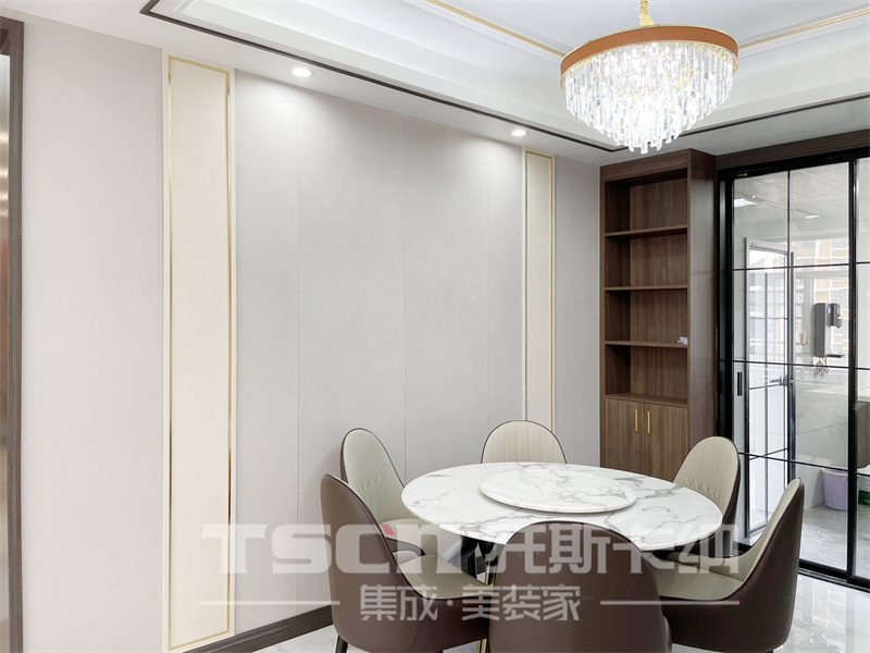 設(shè)計要素:全屋護(hù)墻板,搭配金屬細(xì)線條,打造精致輕奢感。整體硬裝色調(diào)淡雅,搭配深色軟裝,深淺相宜,彰顯貴氣。